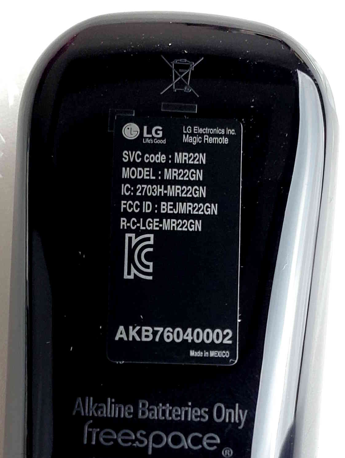 MR22N / MR22GN / AKB76040002 LG Remote Control