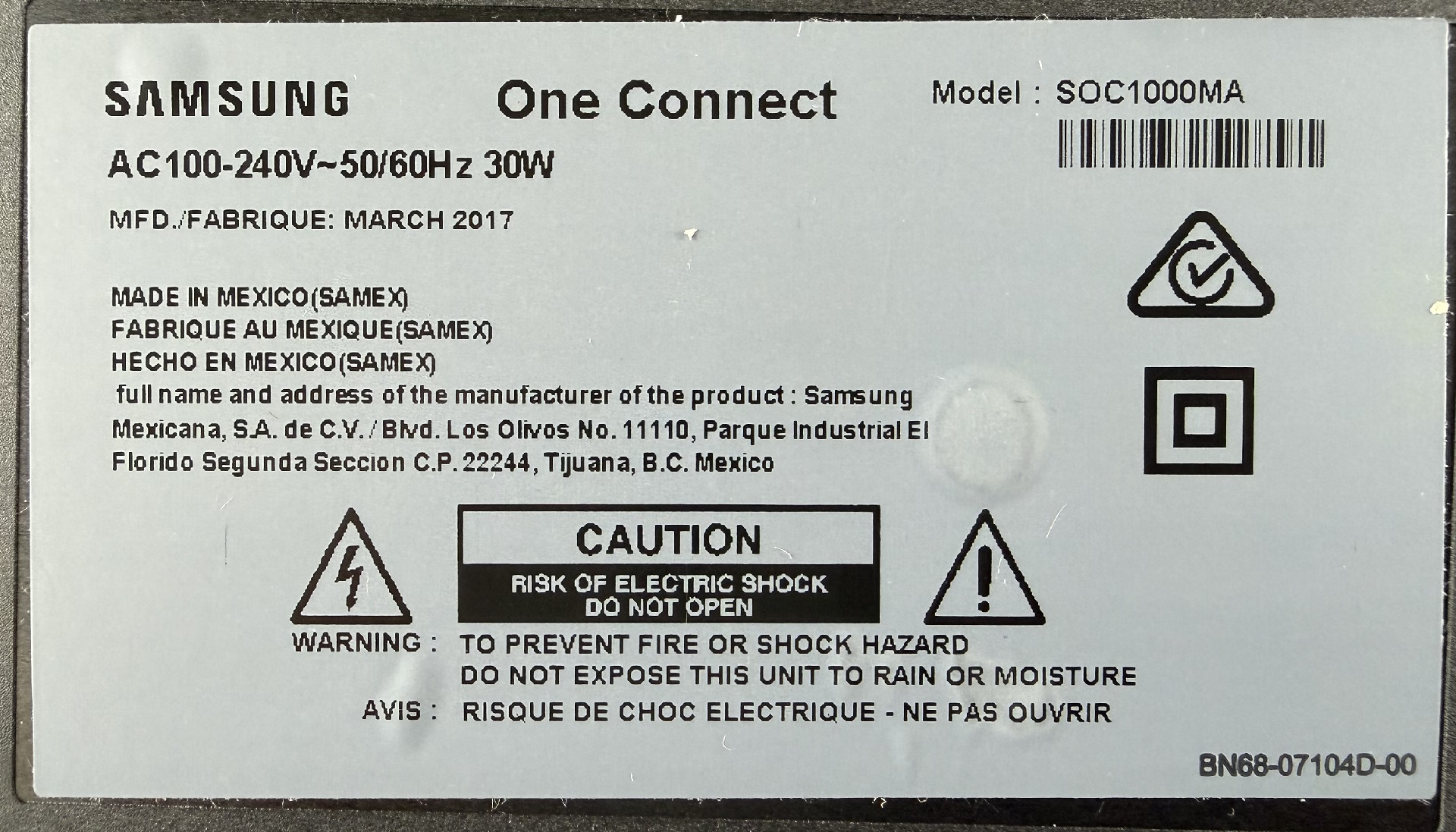 Samsung BN91-18999A One Connect Box - NEW
