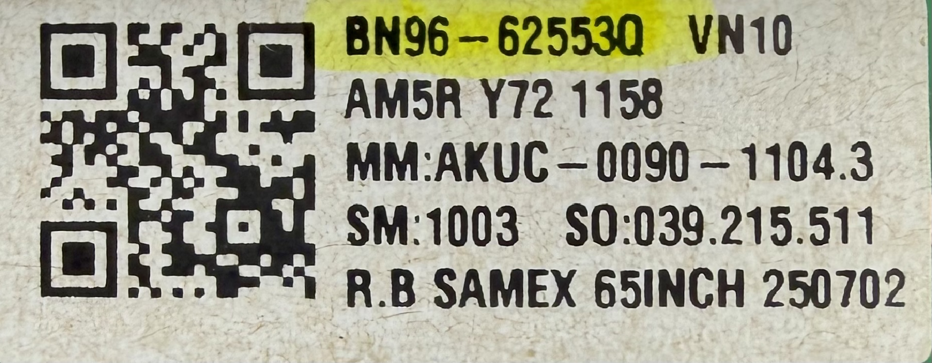 PART NUMBER: BN96-62553Q